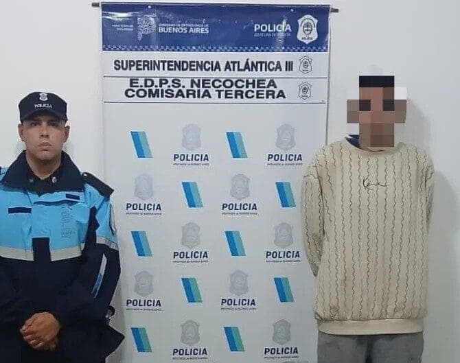 El sujeto fue aprehendido en el lugar, sin que se registraran incidentes durante el procedimiento, el cual se llevó a cabo con las medidas de seguridad pertinentes. El Tribunal en lo Criminal Nº 1 del Departamento Judicial Necochea avaló el accionar policial y dispuso la aprehensión del masculino.